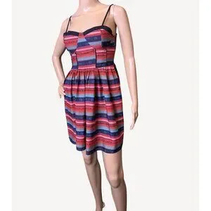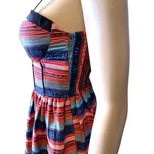Band Of Gypsies Striped Corset Bustier Mini Dress Smocking Red Blue Size Small