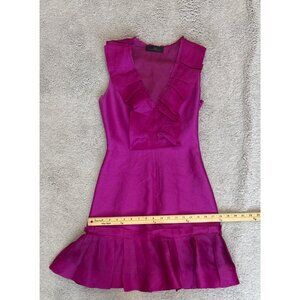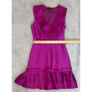Carolina Herrera Fuchsia Silk Dress Size 4 Ruffle V Neck Missing Belt Sleeveless