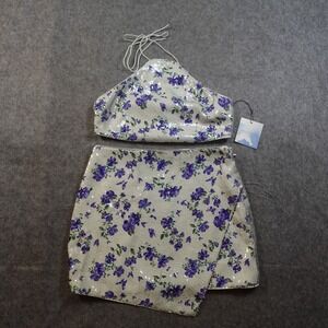 Majorelle Skirt Top Set Medium NWT Tamara Sequin Purple Butterfly Floral Cropped