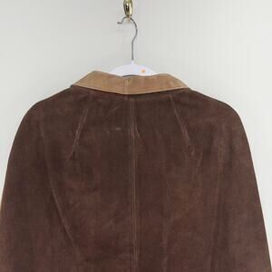 Stylish women's cape jacket featuring a unique floral design. Crafted in elegant brown and tan hues, this jacket adds a touch of sophistication to any outfit.