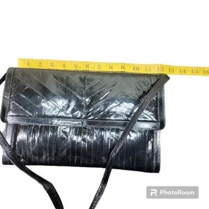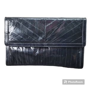 * Clutch purse 100% eel skin includes shoulder strap black zipper pockets