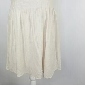 Milkmaid Fit Flare Dress Short Small Cream Linen Open Back Ruffle Sleeve Prairie