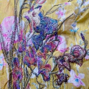 Aratta Silent Journey Yellow Floral Open Front Embroidered Cardigan