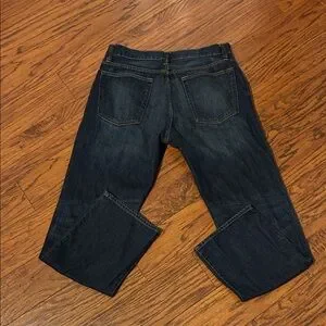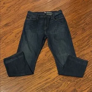 Classic straight fit. Dark blue denim. Comfortable and stylish. Inseam is 32