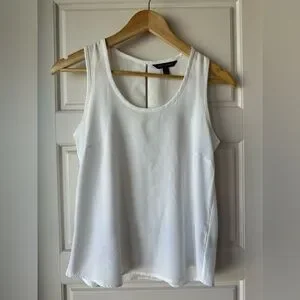 Chic and simple white tank top. Ideal for layering or wearing alone. Perfect for casual or dressy occasions.
