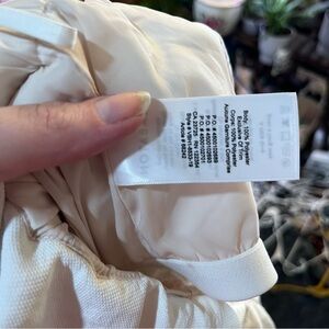 It's made with a textural basketweave fabric. Invisible zipper at the back. Two pockets, strapless style, cropped wide leg and hidden zipper.