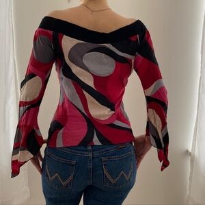 Vintage Italian Brand Silky Off-Shoulder Retro Funky Blouse
