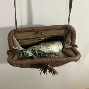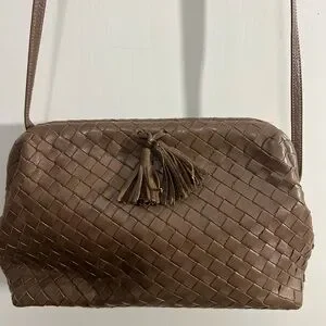 Elevate your style with this chic taupe woven leather crossbody bag. Perfect for daily use, it offers both elegance and practicality.