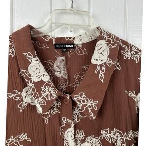 Fashion Nova Floral Romper Brown Boho Vacation Resort Wear Shorts Romper XS