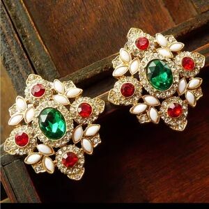 Dazzle in royal style with this stunning vintage-inspired gold cross brooch. Featuring brilliant emerald green and ruby red crystals surrounded by faux pearls and rhinestones, this Baroque statement piece adds timeless glamour to any outfit. Perfect for blazers, coats, or scarves.