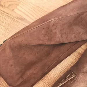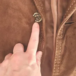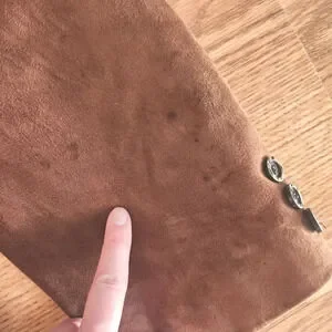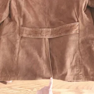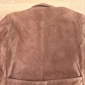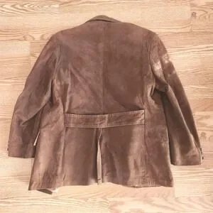 There are multiple stains on the jacket as pictured. Please see all photos for condition. This could use a good cleaning from a professional dry cleaner but otherwise it's in pretty good shape.