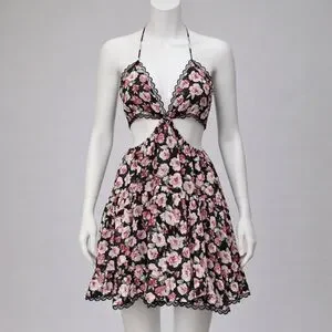 Sky to Moon Floral Cutout Halter Dress 🌸🖤