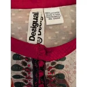 Desigual Sheer Floral Boho Tunic Top in size XL is a unique and eclectic piece perfect for women who love artsy and indie styles. Beautiful rhinestone detailed button up front. In excellent condition, measurements are pictured.