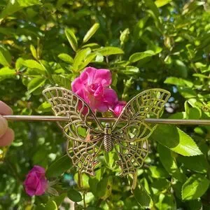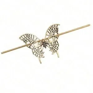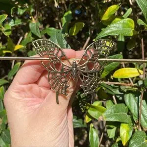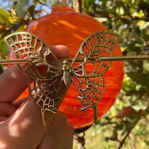 Elegant Cottagecore Gold Tone butterfly hair accessory with matching hair stick. Beautiful details and design. Lightweight so not to pull your hair down. Perfect for adding a touch of nature to your hairstyle.