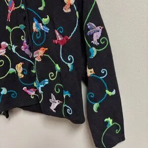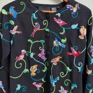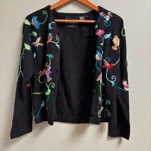 Michael Simon Women Bird Embroidered Beaded Cardigan Size S Colorful Art to Wear