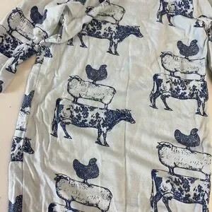 Kate Quinn 3-6mos blue long sleeve snaps animals