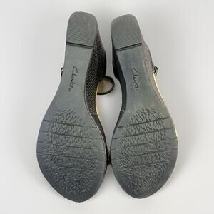 Clark’s Collection Women’s Wedge Sandal Woven Toe Strap, Ankle Buckle Size 10