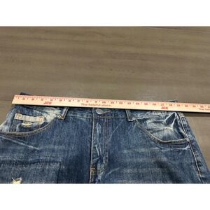 Encrypted Supply Co Mens Distressed Patchwork Straight Leg Blue Jeans 37x32
