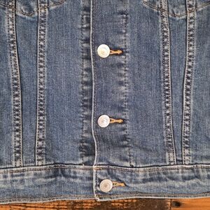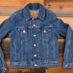 🌟🌟Levi's denim jacket in blue. Features tan stitching and branded tag. Classic button detail. A great addition to any closest.