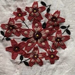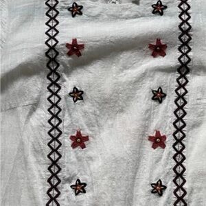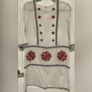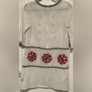 Suno White Embroidered Tunic Dress Boho Cottagecore Floral Appliqué Size 6
