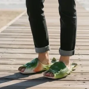 Dive into comfort with these quirky green fish slippers. Perfect for adding a splash of fun to your relaxation time.