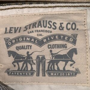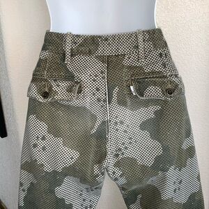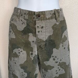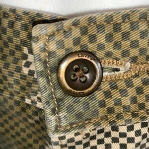LEVI’s jeans, pixelated green camo, button front, hi rise. Medium.