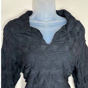 Keywords: Bohme, black top, long sleeve top, womens top, collared blouse, pullover top, textural top, XL top, elegant top, modern top, black blouse, womens blouse