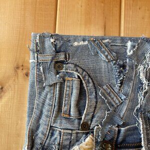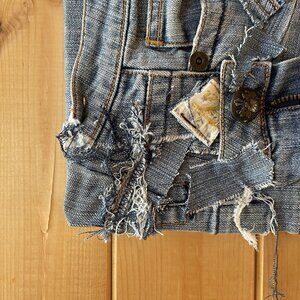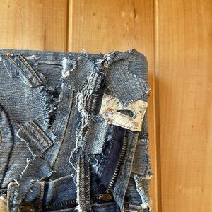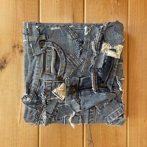 Upcycled Distressed Jeans Denim Patchwork Wall Art Textile Grunge Raw Brutalist