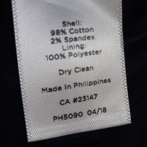 98% Cotton/2% Spandex (Shell)/100% Polyester (Lining)