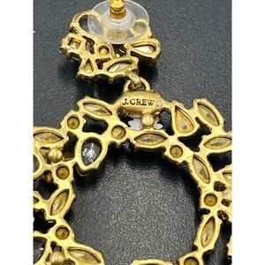 These J Crew Floral Hoop Circles White Enamel Gold Tone Crystal Stud Dangle