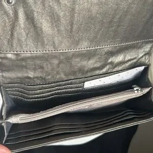 Interior features 12 card slots, 1 zip pocket and 2 slip pockets