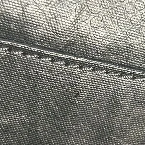 Exterior features silver tone hardware, logo patch and 1 back slip pocket