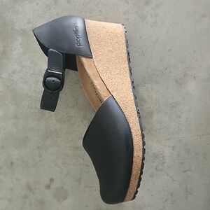 Birkenstock Papillio Black Leather Mary Ring-Buckle Wedge Mary Jane Size 41 / 10