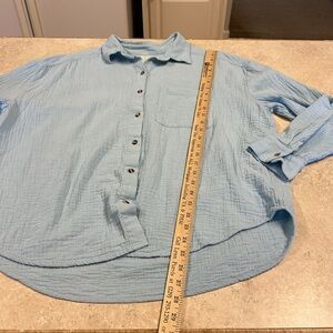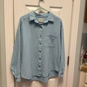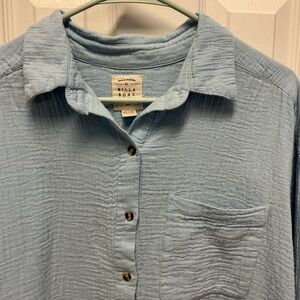 Billabong Women’s SZ L Blue Long sleeve Gauze Button Up Top Blouse Beach
