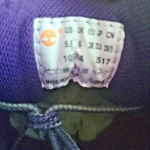 This product is a pair of Timberland Junior Girls' Boots in size 5.5 medium, featuring purple and pink colors. These lace-up boots have a round toe shape and a flat heel, made of waterproof nubuck material. Designed for outdoor activities like hiking and winter sports, they offer comfort and insulation for cold weather conditions. The Timberland brand is known for its durable and reliable footwear, making these boots a practical and stylish choice for young girls who enjoy outdoor adventures.