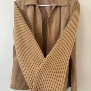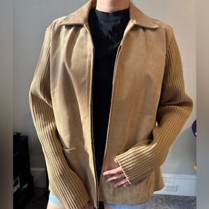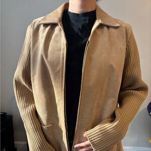 Vintage AMI Preppy Suede Leather Tan Zip Up Jacket Cotton sleeves Large - XL