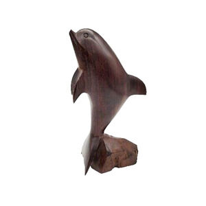 The figurine showcases the skillful artistry of the carver, who shapes the solid ironwood block into the form of a dolphin. Each curve and contour of the dolphin's body is carefully carved, capturing the grace and fluidity of the marine mammal. The smooth lines and attention to detail contribute to the lifelike portrayal.