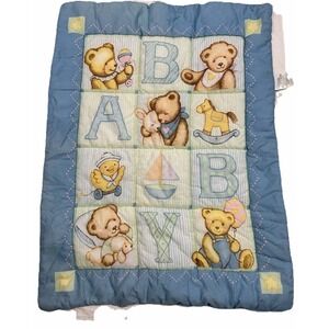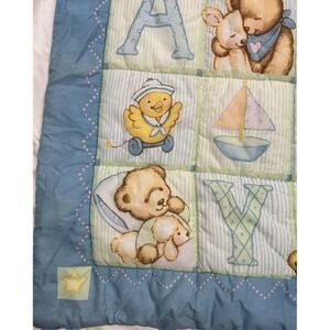 Vintage 90s Springmaid Baby Quilt Alphabet Blocks Blue Jeans Teddy Cottagecore