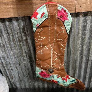 This charming stocking is designed to look like a cowgirl boot, complete with traditional embroidery and one of Ree's signature floral designs.