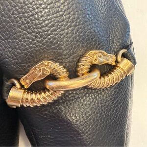 Excellent condition. Worn once. Women’s Tory Burch JESSA Mules / backless loafers. Pebbled black leather, gold double dragon head embellishment, leather soles. MSRP $350