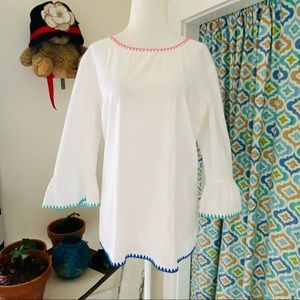 Talbots Embroidered Trim Bell Sleeve Top (size XS)
