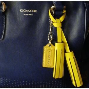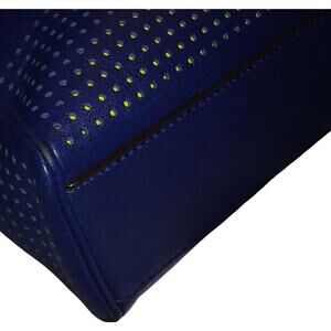 This beautiful Candace Carryall tote bag from Coach is highly functional while being charming and stylish. Crafted from perforated leather, the navy blue & green bag features dual handles and silver-tone hardware. The canvas-lined interior comes with multiple pockets.