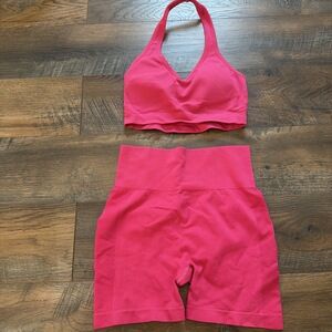 Pink workout set - butt lifting shape wear shorts + sports bra size xs