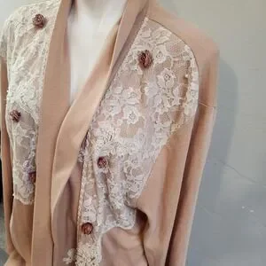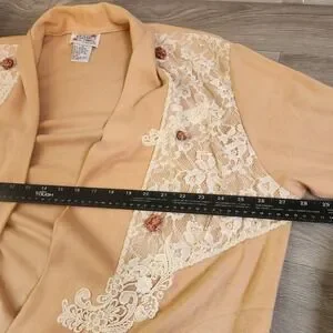 Vintage Lacy Afternoon Shell Kepler Lace Rosette Cardigan Peach Plus Size 1X