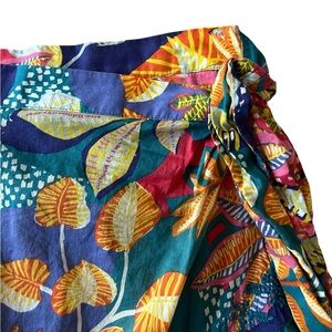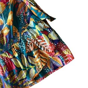 Cynthia Rowley Colorful Leaf Print Cotton Wrap Skirt Size M