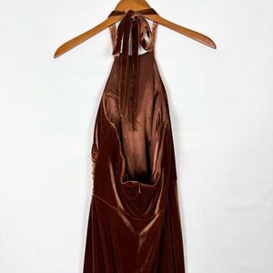 Revelry Tori Velvet Dress Rust Maxi Ruched Cinch Size 6