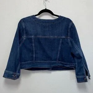 Torrid Blue Medium Wash Collarless Cropped Bolero 3/4 Sleeve Denim Jacket 3683