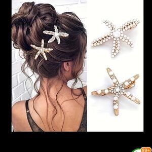 ⚪️🌟⚪️ STARFISH HAIR CLIPS (2) WITH PEARLS & RHINESTONES❗️⚪️🌟⚪️