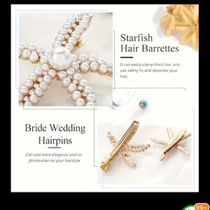 A Set of 2 Sweet Starfish Hair Clips Adorned with Faux Pearls and Crystal Rhinestones, Suitable for Weddings, Dates, Vacations, Celebrations And Everyday Wear, Elegant Hair❗️⚪️🌟⚪️