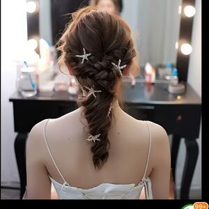 Elegant starfish alligator hair clips adorned with sparkling rhinestones stones and pearls. Perfect for adding a touch of glamour to any hairstyle.⚪️🌟⚪️